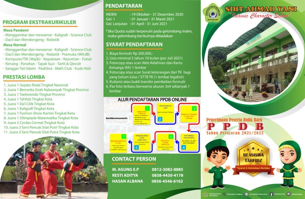 PPDB TAHUN PELAJARAN 2021/2022 TELAH DIBUKA Post author:Admin Post published:20 October 2020 Post category:Pengumuman Post comments:0 Comments Brosur PPDB Tahun Pelajaran 2021/2022 Alur Pendaftaran PPDB Online You Might Also Like PERAYAAN HUT RI KE 77 DAN TASYAKURAN SEKOLAH PENGGERAK 31 August 2022 FATHYA MURID KELAS VI SITAYA JUARA SATU MENGGAMBAR TINGKAT JATIM 2022 18 May 2022 SDIT AHMAD YANI LUNCURKAN PROGRAM “BOTOL BERKAH” DUKUNG PERSIAPAN ADIWIYATA PROVINSI 11 September 2025 Leave a Reply Cancel replyCommentEnter your name or username to comment Enter your email address to comment Enter your website URL (optional) Save my name, email, and website in this browser for the next time I comment. Δ
