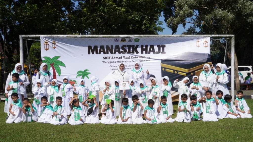 Malang – Rabu, 4 Juni 2025. SDIT Ahmad Yani menggelar kegiatan pembelajaran Manasik Haji Cilik yang berlangsung meriah dan khidmat di Lapangan Ajendam V Brawijaya Kota Malang. Kegiatan ini diikuti oleh seluruh murid kelas 1 hingga kelas 6 SDIT Ahmad Yani, serta peserta dari dua lembaga pendidikan anak usia dini, yaitu TK Gritaba dan TK Alhuda Bagus.